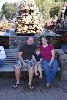 This was Party Jumps first weekend off since the middle of summer, so I wanted to do something fun. I mentioned something to Stacy about Gold Rush, but we ended up in Helen instead. We were trying to figure out what was going on when we got into traffic at least 5+ miles outside of down town. It took us at least 30+ minutes to get into Helen. This wouldn't have been a big deal 4 years ago, but this time we had a little boy ask every 3 minutes, "are we almost to the fun place yet?" We didn't tell him where we were going, just that he was going to have fun. Oh yeah, we also had a "starving" not quite 2 month old :) When we finally turned the curve and Micah could finally see Helen he must have said, "I can't believe it!" a million times. He was So excited and we hadn't even gotten outside of the car. We finally ended up parking way down at Cool River Tubing, because parking was no where to be found. It was Packed! Come to find out it was all due to Oktober fest!